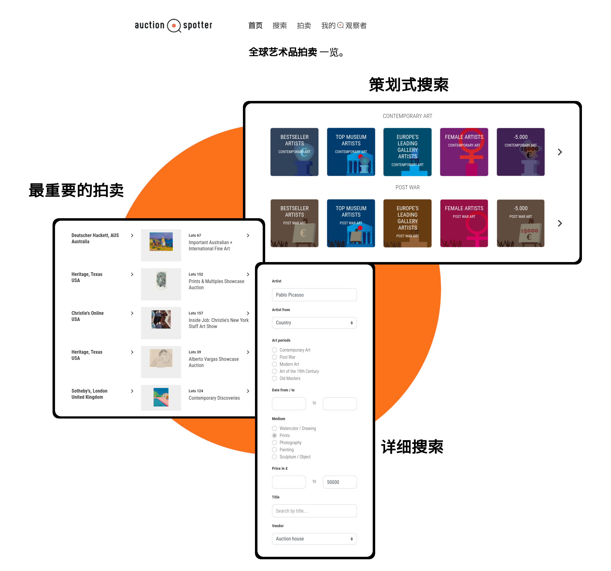 Auction-spotter.net – 以英文、中文、德文和法文提供全球最重要的艺术品拍卖信息。
